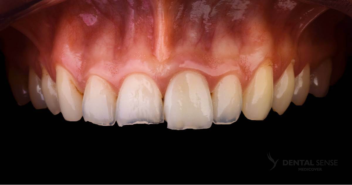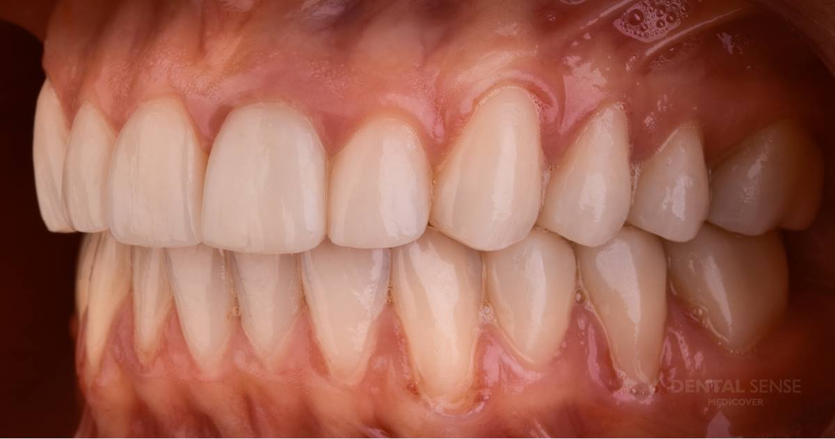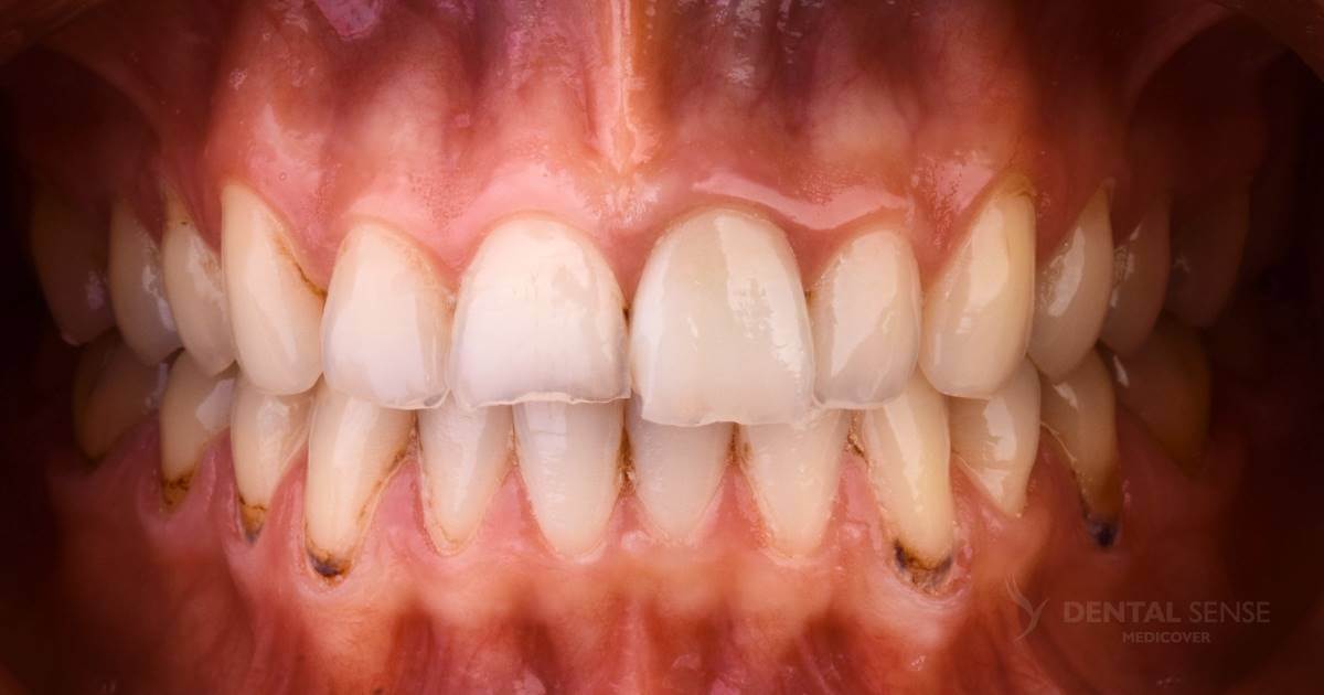 Metamorfozę uśmiechu Aleksandry rozpoczęliśmy od deprogramacji, która pozwala między innymi na określenie prawidłowej pozycji żuchwy i znalezienie właściwego układu zębów górnych względem dolnych.