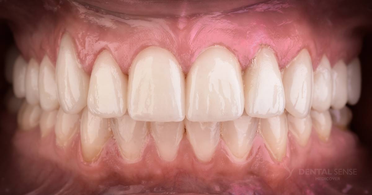 Benedicte trafiła do nas nie tylko z problemem zniszczeń wywołanych erozją zębów, ale również z ogromną dentofobią. Strach przed zabiegami stomatologicznymi był u niej tak duży, że podczas pierwszej wizyty pojawiały się łzy. Stanęliśmy przed podwójnym wyzwaniem – przywrócić uśmiech i pomóc pokonać lęk. Czy się udało? Wystarczy spojrzeć na zdjęcie z ostatniej wizyty!