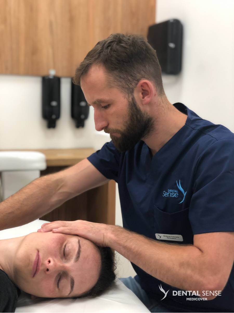 Muskelmassasje er en svært nyttig behandling i behandlingen av funksjonelle forstyrrelser i tyggesystemet. Vi bruker ulike massasjeteknikker, inkludert tverrgående og klassisk massasje. De lar deg slappe av og forbedre muskelfleksibiliteten, noe som bidrar til å gjenopprette riktig bevegelse i leddet.