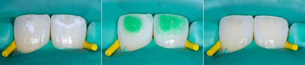 ICON radzi sobie z usunięciem białych plam na zębach różnego pochodzenia. W przypadku poważnych zmian, by całkowicie zniwelować nieestetyczne przebarwienia, konieczna może być seria zabiegów. Dotyczy to szczególnie zaawansowanej fluorozy – choroby, której przyczyną jest nadmiar fluoru prowadzący do demineralizacji szkliwa. Przeważnie jednak wystarczy jeden zabieg, by znacząco poprawić estetykę uśmiechu poprzez pozbycie się białych plam.
