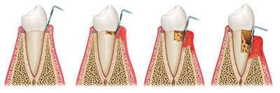 - Płukanie kieszonek dziąsłowych i aplikacja miejscowa leków.