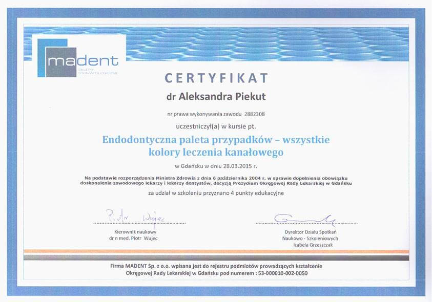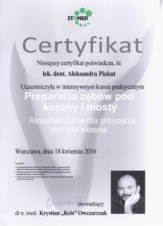 Lek. dent. Aleksandra Piekut ukończyła Gdański Uniwersytet Medyczny.