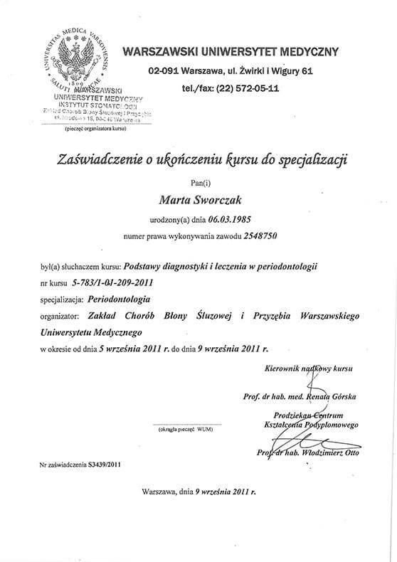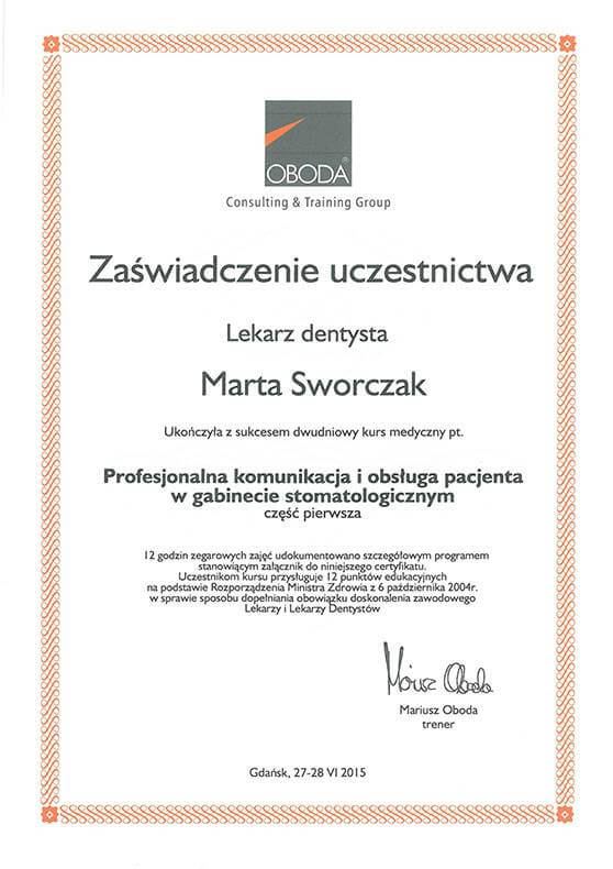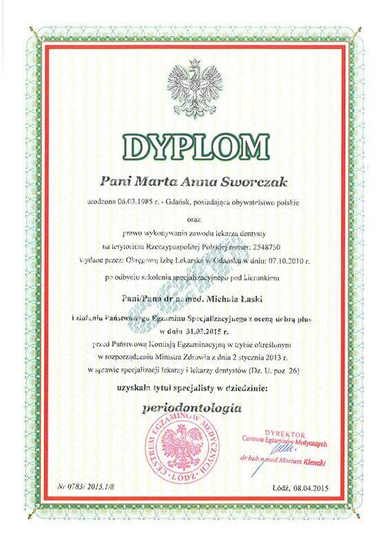 Lek. dent. Marta Sworczak-Gołąbowska wyróżnieniem ukończyła Gdański Uniwersytet Medyczny.